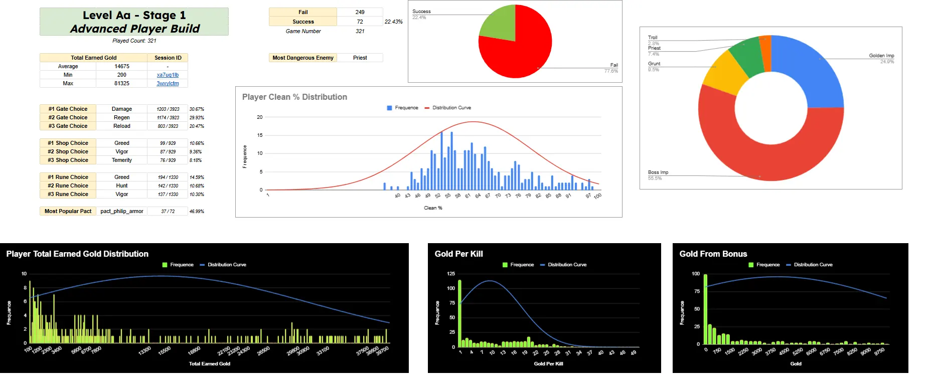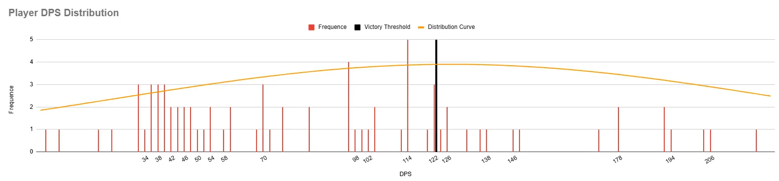 In this example of Player DPS Distribution, we can see the "Victory Threshold" that is the hard limit if the player has enough damage per seconds to kill the level boss or not.