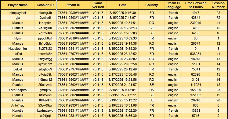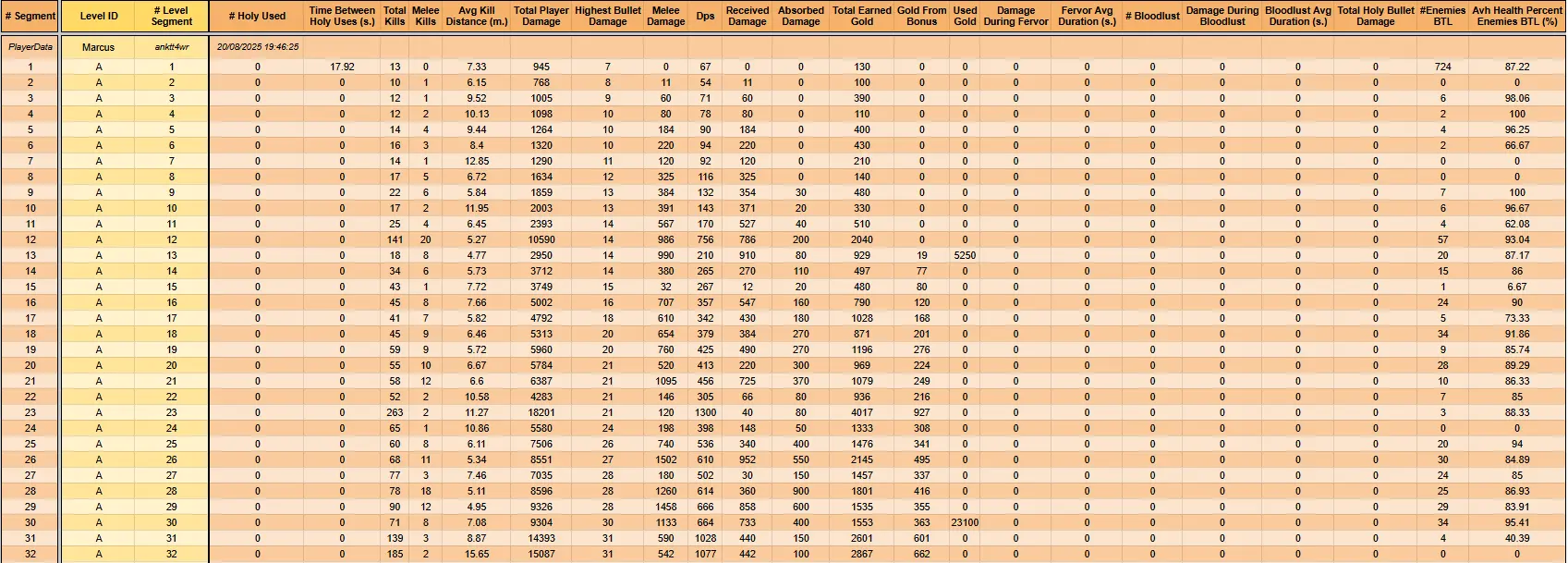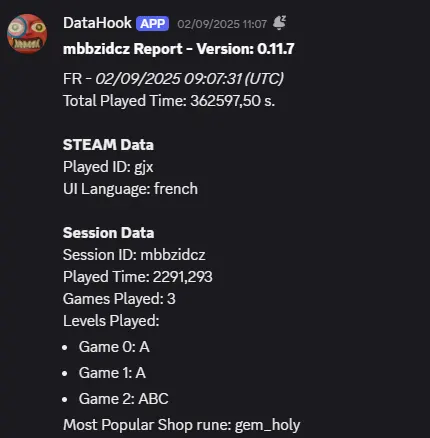 As being an "heavy" CSV file, it cannot be exported to the sheet as the level data per player, so I decided to export it to Discord as a text file.