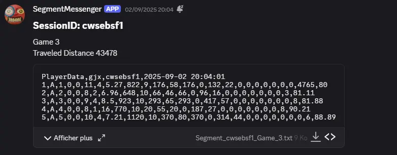On the Discord server used for development, I've setup 2 webhook and channels to store a few Runtime data and the location to store segment data's.