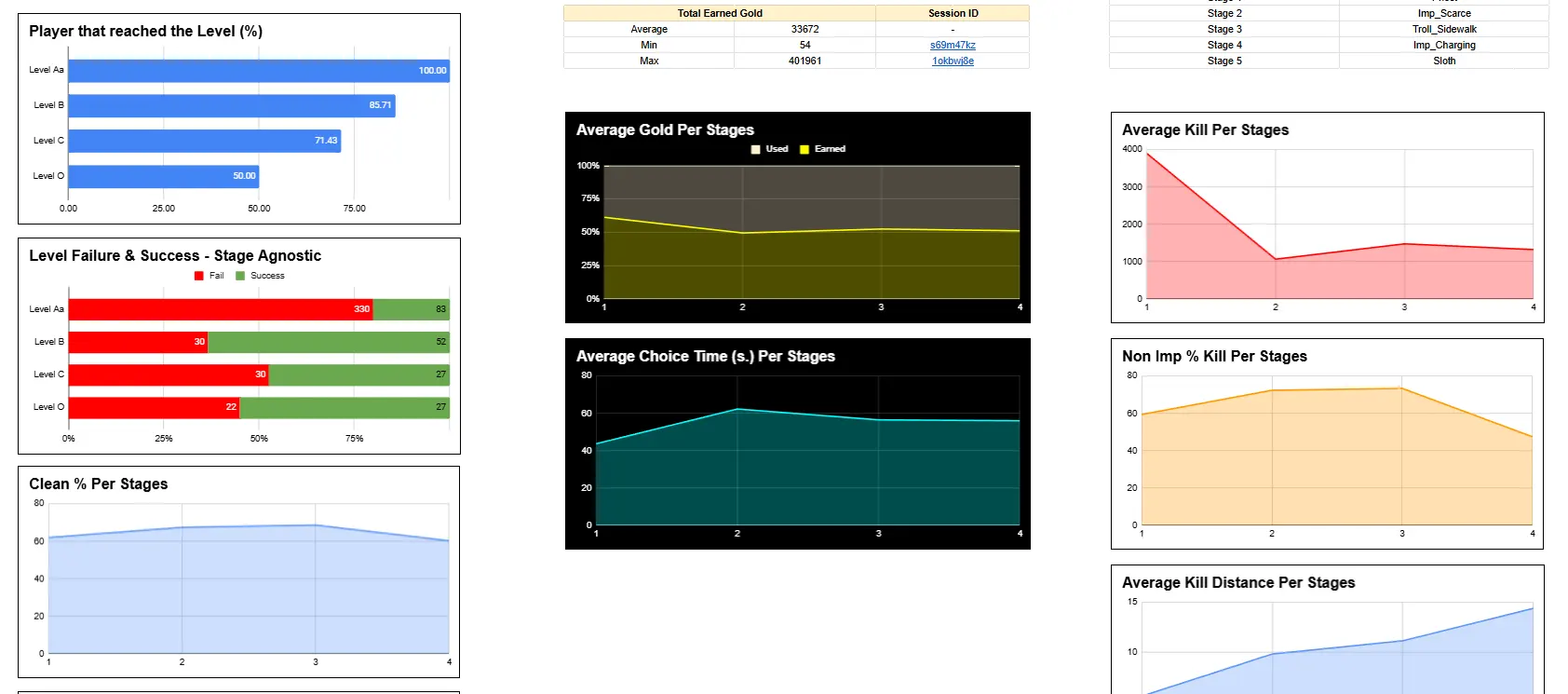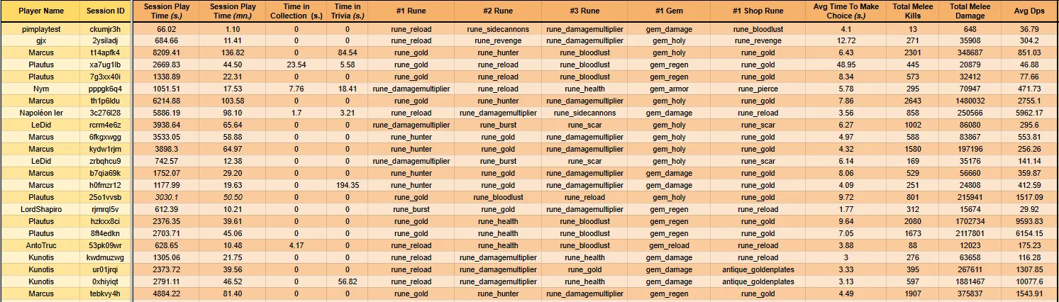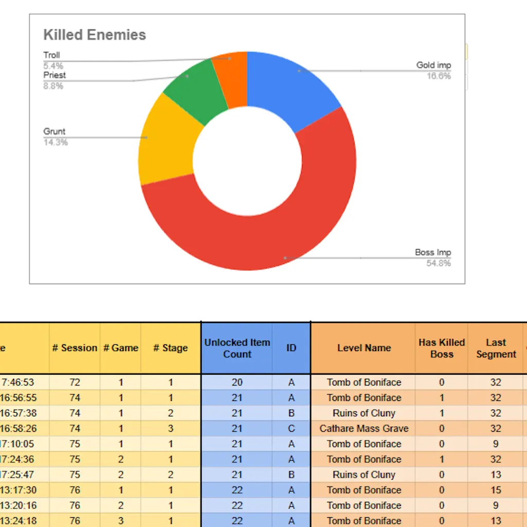 Those data are sent in CSV format and spread into dedicated "data" sheet used for Session, General Game Data, Played Level data's.