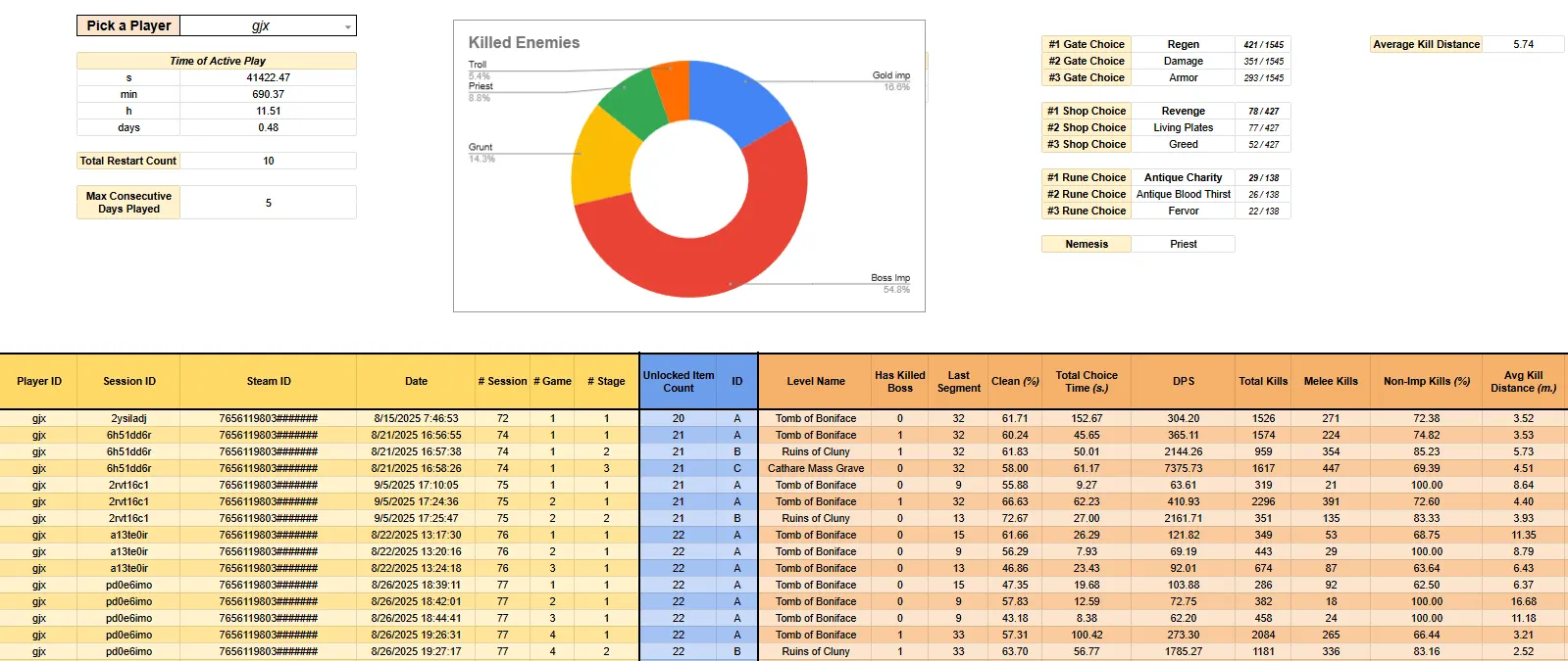 Team Size: 7 ⏱️ 2 Month Internship 🎭 Steam Integration 🎭 Analytics